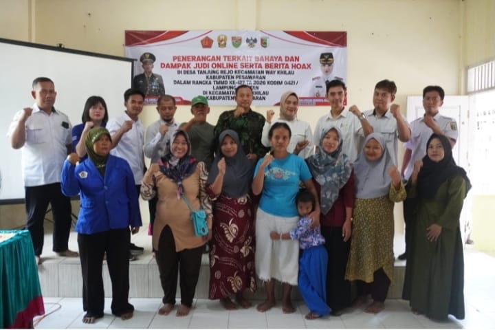 Koranaspirasi.com|Pesawaran – Diskominfotiksan Pesawaran menggelar sosialisasi bahaya judi online dan penyebaran hoaks dalam kegiatan TMMD ke-127 di Desa Tanjung Rejo, Kecamatan Way Khilau, Rabu (25/02/2026).