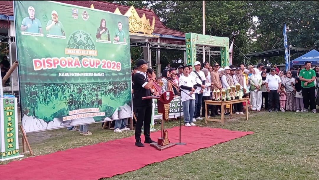 Penutupan Dispora Cup 2026 turut dihadiri Kepala Dinas Pemuda dan Olahraga Pesisir Barat Rena Novasari, Ketua Porwosi Dian Hardianti Dedi, Ketua PSSI Pesisir Barat Aris Ikhwanda, perwakilan Polres dan Kodim, anggota DPRD, Kabapenda Hendri Dunan serta sejumlah pejabat daerah lainnya.(byg)