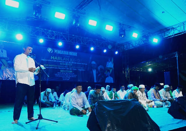 Koranaspirasi.com | PRINGSEWU – Bupati Pringsewu Riyanto Pamungkas menghadiri pengajian akbar dalam rangka Hari Lahir (Harlah) Majelis Dzikir Rotibul Haddad Wataklim Ahbabul Mustofa Pusat (AMP) ke-17 di Lapangan Mars Pringkumpul, Kelurahan Pringsewu Selatan, Kecamatan Pringsewu, Kabupaten Pringsewu, Lampung, pada Kamis (29/1/2026) malam.
